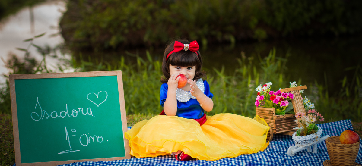 A princesa Isadora, é uma menina que tem um brilho no olhar, e sem falar no lindo cabelo que ela tem, seu pré ensaio foi o tema Branca de Neve, nada mais justo né? A mamãe Amanda e seu Papai João, sempre estão buscando a felicidade da família.